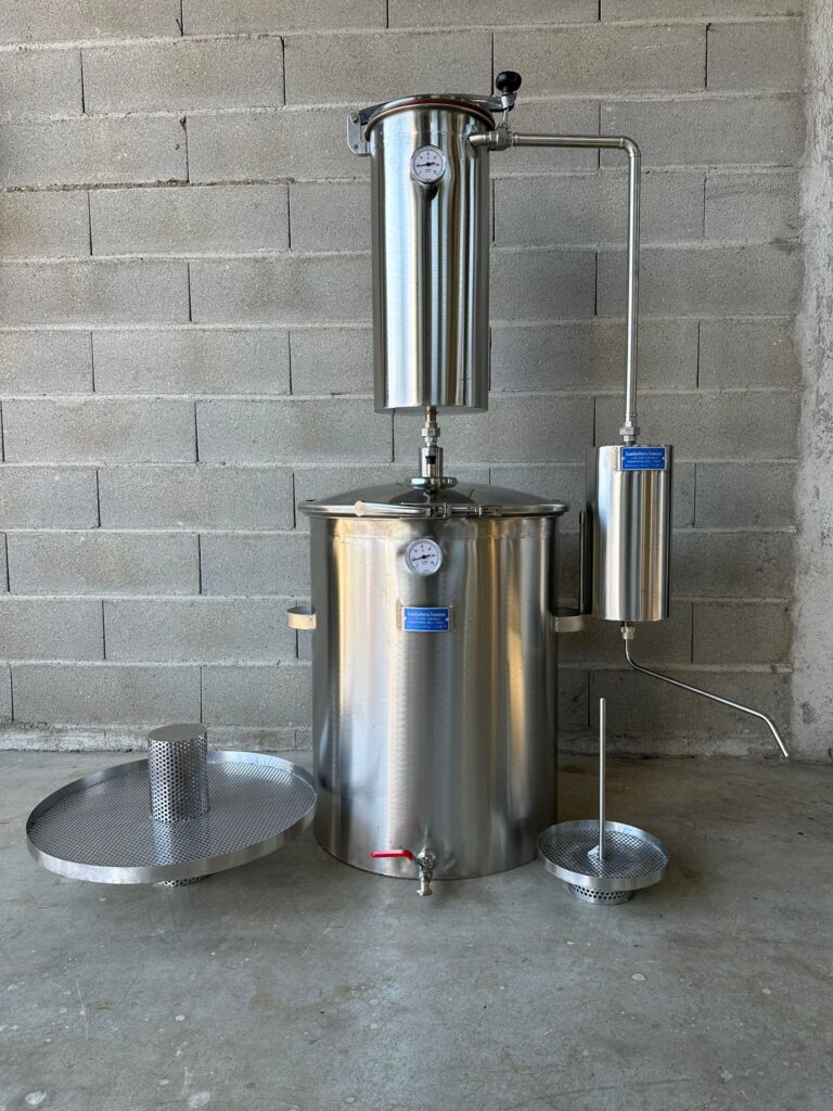 I nostri modelli di alambicco possono essere adattati anche a un utilizzo con caldaia esterna. La caldaia esterna nel processo di estrazione a corrente di vapore consente di effettuare più estrazioni consecutive, mantenendo pulita l’acqua all’interno della caldaia esterna. Realizziamo su richiesta le caldaie esterne. Per maggiori informazioni contattaci.